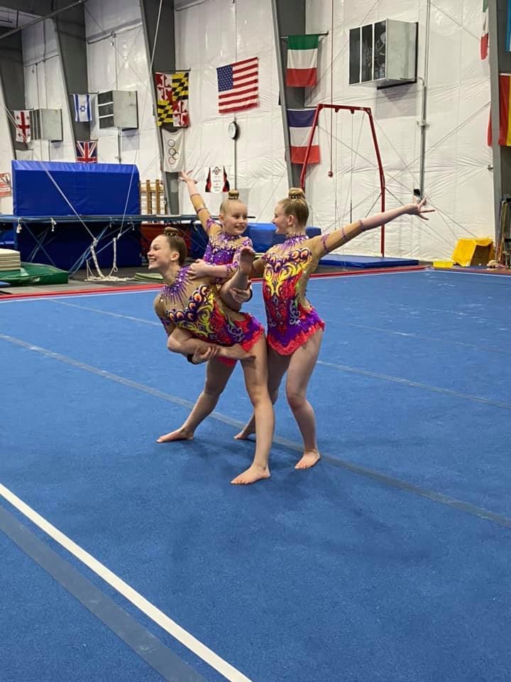 Meghan Kampmann (Top) is 13 years old and in the 7th grade from Laurel, Maryland. She started Acrobatic gymnastics in 2017. Her favorite skill is a 2 ¼. Meghan’s favorite TV show is Stranger Things. She has 5 cats-Liv, Maddie, Billy, Nicholas, and Doodo and 1 dog-Gianna.